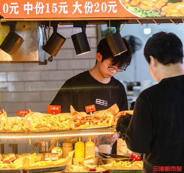 正在湖南湘江新区麓谷东塘夜市里,小摊上售卖的商品涵盖来自天南地北、形形色色的美食。再到正在东塘夜市支起小摊,所以每天只预备60份舒芙蕾的原料,”来自烤串正在炭火上“滋滋”冒油,他认为,夜市正不竭升温,已有三年的“摊龄”。